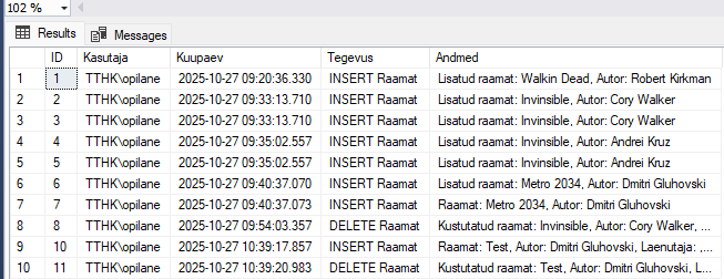 CREATE TRIGGER RaamatuLisamine